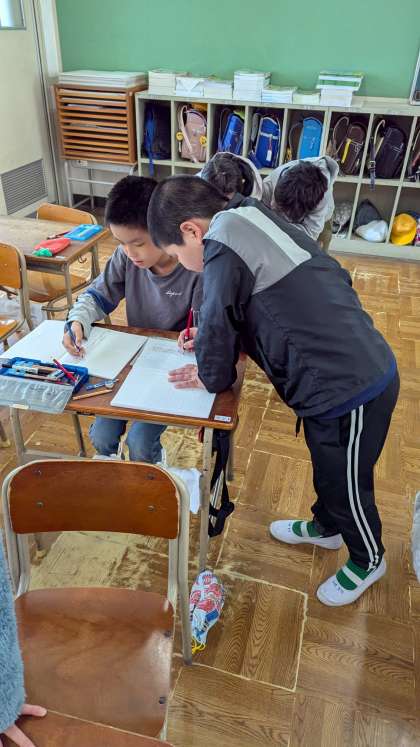 思い出しながら書く児童、似た形から連想して書く児童、「季節」や「色」などまとまりの言葉を具体的に落とし込み書く児童(春夏秋冬や赤青黄など)、様々な姿を見ることができました。
