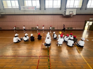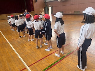 体育科で、体力テストに向けて3年生から新しく始まる反復横跳び、20メートルシャトルランの練習をしました。姿勢やスピードなど、コツを意識してがんばりました!