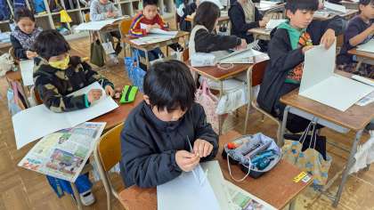 半分に折ったり、ひもをくくったり、テープを貼ったりして無事完成ー!!