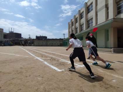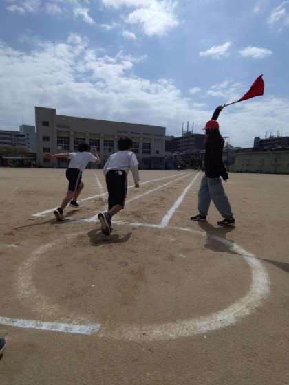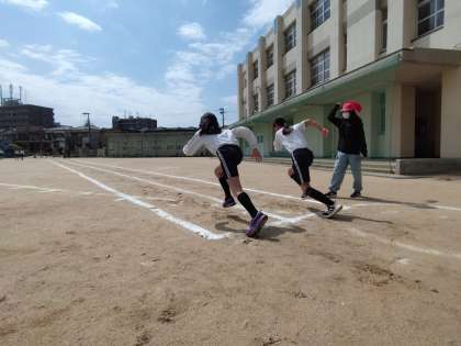 50メートル走のタイムを計りました。走り出す姿がかっこいい6年生、運動会ではリレーも披露します。楽しみにしていてくださいね!
