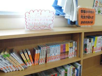 今週は、学期に1回設定している読書週間の週です。月曜日の朝礼では、香簑小学校のお宝である130年前の本「日本読本」の中から「虎」と「水」について読みました。また、昼の読み聞かせの放送や図書館に香簑小学校推薦図書の本が置かれました。子どもたちが、たくさんの本を読んで心豊かに成長してほしいと思います。