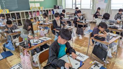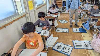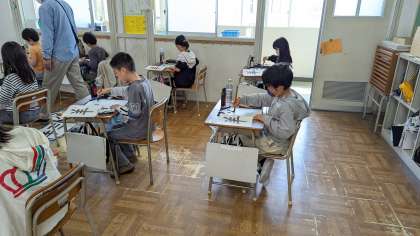 試し書きをし、字のポイント(画の長さと間隔)捉え、どうしたらお手本のように美しく書けるのかを考ました。