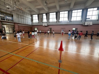 最後は、お楽しみで全員でドッジボールをしました。