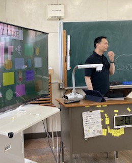 先生の自己紹介を聞いて驚いたり、質問をしたりと、興味を持って取り組んでいました。