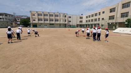 ペアと気持ちを合わせて走ったり、跳んだりしゃがんだり、楽しく競走することができました。