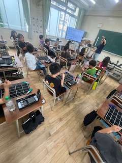 今日は楽しみにしていた習字の学習をしました。道具の置き場所や使い方、片付けを一つ一つ確認しました。特に筆の使い方、よく分かったかな??みんなとても良い姿勢で学習に臨んでいました。