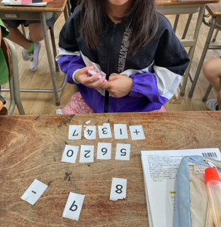 数カードを使って問題を作り、友だちが作った問題を解きました。