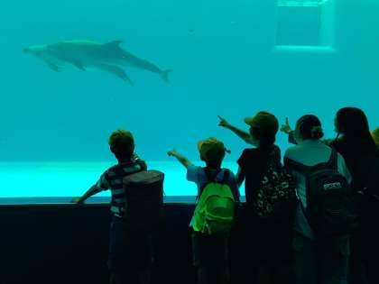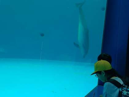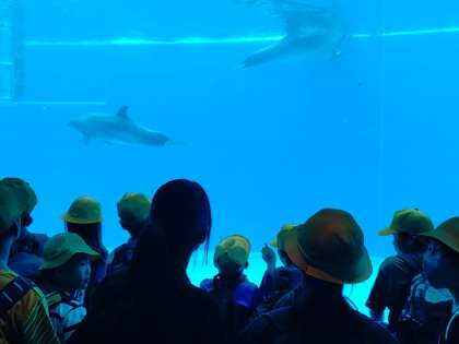 まずはドルフィンホールで涼みながら、イルカの見学です。