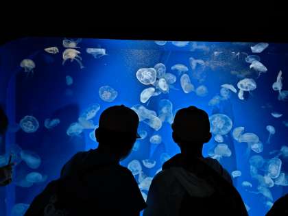 クラゲライフでじーーーっと眺める子どもたち、日々の疲れを癒しています。