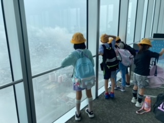 58階でお昼ご飯を食べて、60階の展望台に登ります!子ども達はわくわく、ドキドキの様子です。