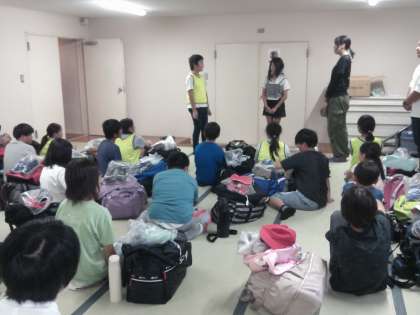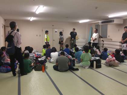 ハチは高原ですので、日差しはつよく昼は暑いです。宿舎の方が、冷房の効いたホールを用意してくださいましたので、予定を変更して、そのホールで先に開舎式を行いました。