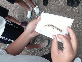 魚つかみの最初に、つかみ方だけでなく、「生き物の命をいただく」ということも教えていただきました。