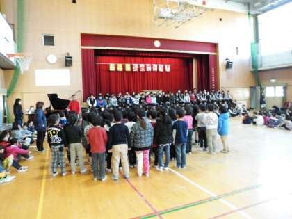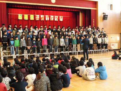 3月3日(木)1限目、6年生の卒業を祝う会を行いました。「各学年から歌やメッセージにリコーダーの合奏によるプレゼント」「6年生思い出クイズ」「プレゼント交換」「6年生から歌とお礼のことば」など、全員で最後まで楽しい集会になるようがんばりました。6年生思いでクイズでは、行事の一番の思い出が3年連続林間学習、給食のメニューNO.1はカレーでした。6年生の登校も卒業式当日を入れてあと10日となりました。少しさみしいですが、一日一日を大切に過ごしてほしいと思います。