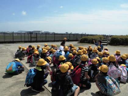 2年生は、伊丹スカイパークに行きました。伊丹空港のすぐ横にある公園です。飛行機の離発着が何度も見られました。前日の雨がうそのような青空の下、友だちと一緒にお弁当やおやつを食べたり、遊具で遊んだりして、楽しく過ごしました。