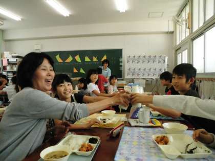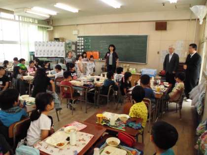 地域の方にも来ていただき、教室で子どもたち(3・4年生)と一緒に給食を食べました。とても美味しくて、子どもたちと楽しい給食の時間をすごしました。