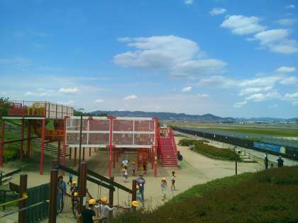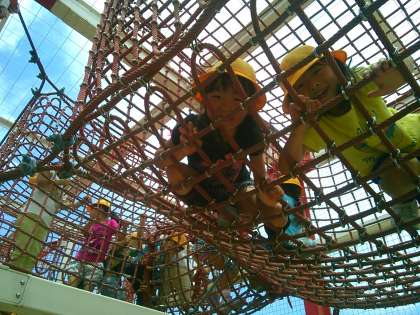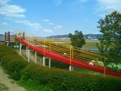 アスレチック遊具はいろんな種類があり、ローラーの長い滑り台は人気でたくさんの子どもたちが順番に並んで滑っていました。