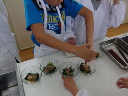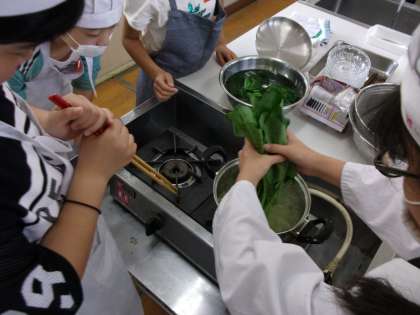 5年生は、5月17日(水)4時間目に、初めての調理実習をしました。今回は、班で協力しながら、ほうれん草のおひたしを作りました。「はじめて包丁使う〜!」などの声も聞こえてきました。どの班も上手に作ることができ、最後はみんなでおいしくいただきました。今度は、お家でも挑戦してほしいですね!19日(金)は1組が実習します。