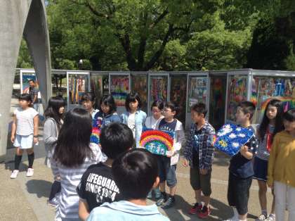 全校児童で折った「折り鶴」の奉納、「HEIWAの鐘」の合唱