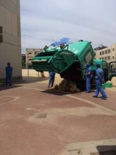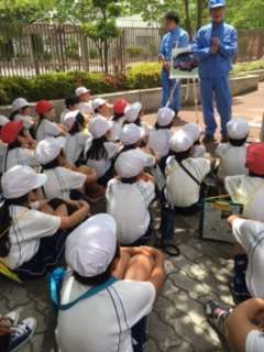 4年生は先日、社会見学で西淀工場へ行きゴミの処理について学びました。そして今日はパッカー車体験ということで、パッカー車を持って体験学習に来ていただきました。