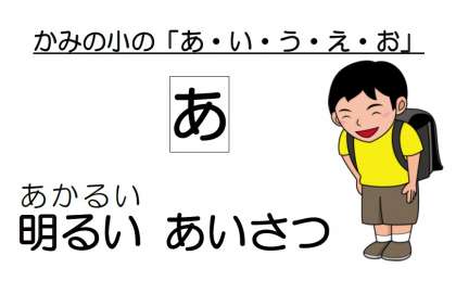 「かみの小のあいうえお」の「あ」は明るいあいさつをしようです。
