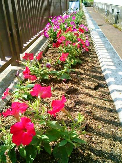 小学校の玄関横のプランターや東門側の花壇には、季節ごとに美しい花がいつも咲いています。
