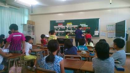 赤・黄・緑の3色の食品をバランスよく食べることが元気のもとです。みんなで食品カードを使い、3色のどれに該当するか黒板に貼っていく授業をしました。