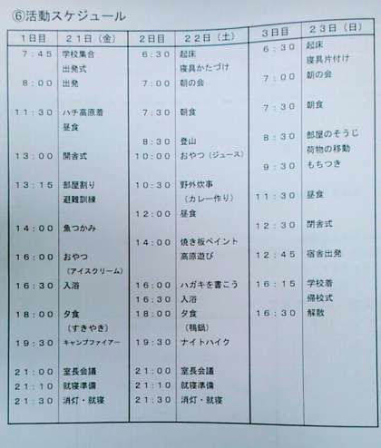 明日、7月21日(金)〜23日(日)までの二泊三日で5年生が林間学習に出かけます。