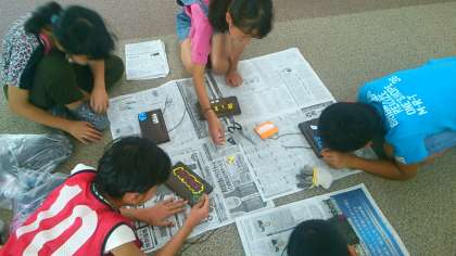 子どもたちは真っ黒になりながら粘り強く磨きました。