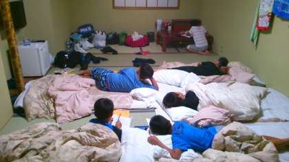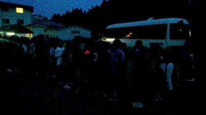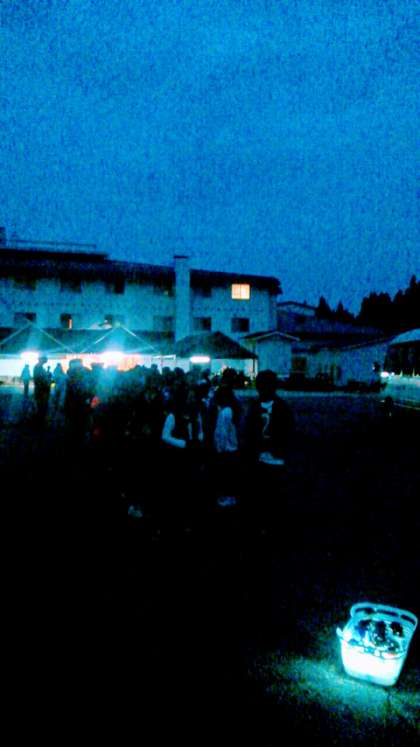活動班でロープを持って進みました。とても真っ暗な中で進むので協力が必要でした。