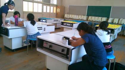 家庭科室では学校給食献立コンクールに向けて、保健給食委員会の子どもたちが献立メニューを考えています。