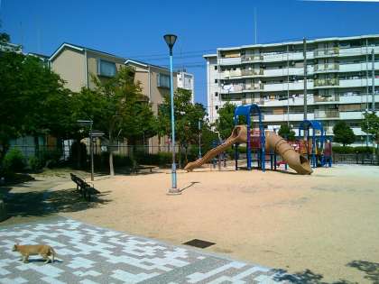 いつもはにぎわっている公園にも子どもたちの姿はありません。いや、猫1匹だけでした。まぁ、この暑さですから、公園で遊ぶのも危険ですね。