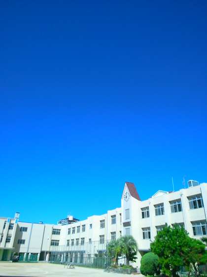 校舎の上には、雲一つない真っ青な空が広がっています。湿度も低くさわやかな朝です。8月の猛暑がうそのようです。
