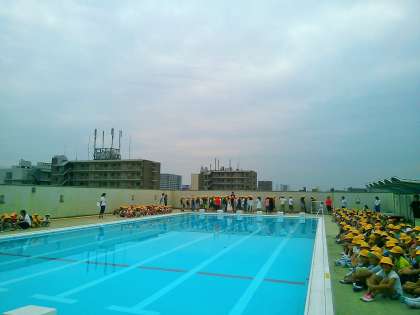本校でも、地震への避難行動としてまずは運動場へ避難。その後、津波発生を想定した第2次避難を続けて実施しました。本校では4階以上の高所は体育館上の屋上プールになります。よって、「命」を守る行動として屋上プールまで避難しました。