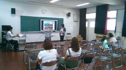 学校説明会では、本校の教育方針や行事などの取り組みについてパワーポイントを使って説明させていただきました。