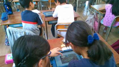 先日の社会見学でスーパーへ見学に行って学んだことを、タブレットを使ってさらに学習を深めました。