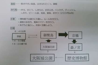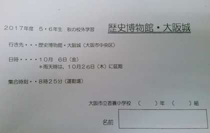 明日6日(金)、5・6年生は「秋の遠足」で歴史博物館と大阪城にでかけます。