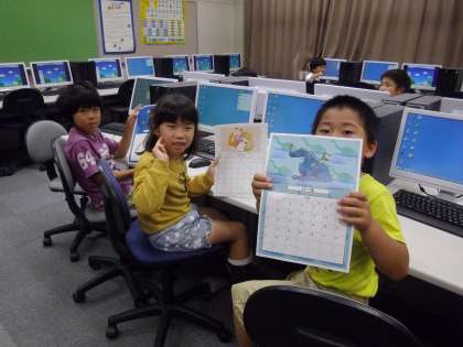 10月6日(金)に、パソコンルームでカレンダーを作りました。ログインの方法や、マウスの持ち方や使い方を勉強しました。好きな絵や背景を選び、オリジナルのカレンダーが出来上がりました。「またパソコンやりたーい!」「次のカレンダーはいつ作るの〜?」と、とても楽しく取り組むことができました。