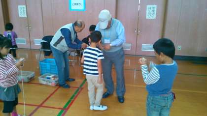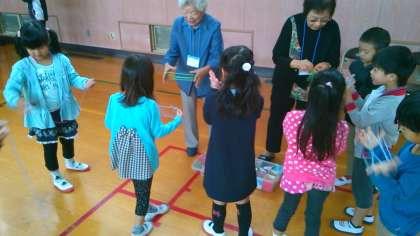 朝から地域のお年寄りのみなさんにお越しいただき、懐かしい昔の遊びを教えていただきました。