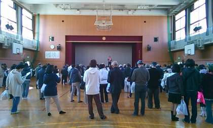 訓練は、午前9時に南海トラフ巨大地震が発生した想定で、町会ごとに津波避難訓練が実施されました。香簔小学校にも避難所開設運営の訓練がおこなわれ、竹島地区と香簔地区の住民の方が避難されてきました。
