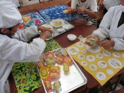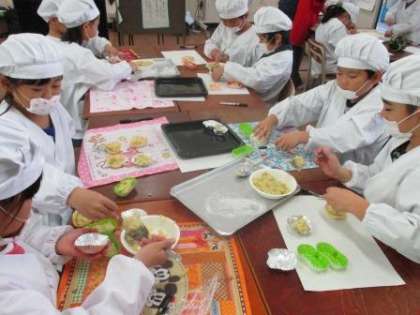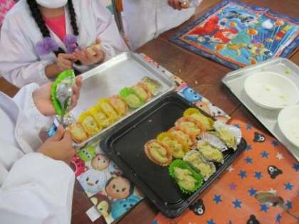 アルミホイルに上手に入れ、かたちを形成しました。明日14日のサツマイモパーティーを楽しみに笑顔があふれながら本日の学習をおこないました。