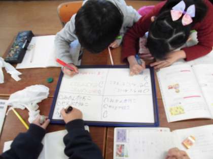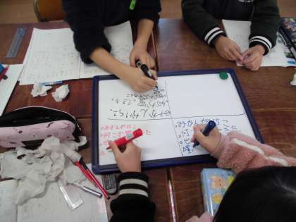 算数科の学習で、小さいホワイトボードを使って学習しました。