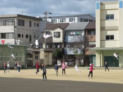 あがりすぎて凧同士が絡んでしまったり、風のために木に引っかかったりと大変でしたが、子どもたちは大喜び!