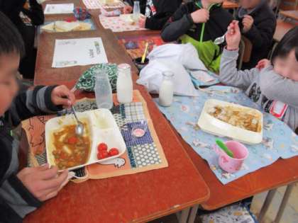 今日の献立は、チキンカレーライス・キャベツときゅうりのサラダ・プチトマト・ごはん・牛乳でした。子どもたちの大好きなカレーライスだったので、おかわりは、あっという間になくなりました。