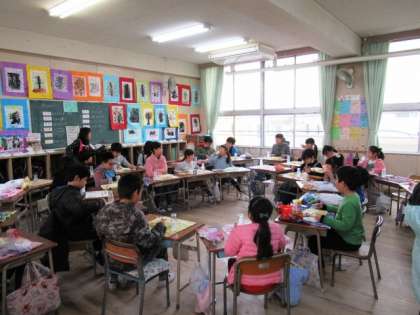 縦割り班で楽しく会食。こんな時間も6年生はあとわずかです。