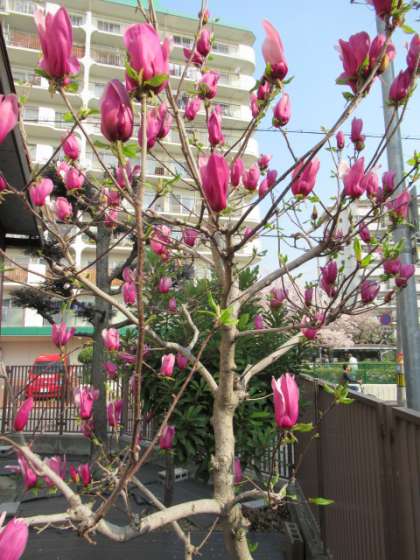 桜の花は散り始めましたが、その片隅に咲く「モクレンの花」は満開です。