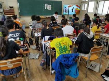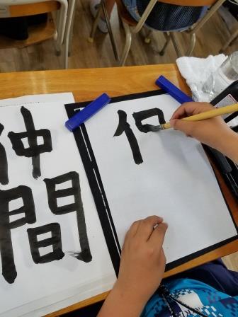 大型テレビで手元を写し、書いている様子をみんなで見ました。