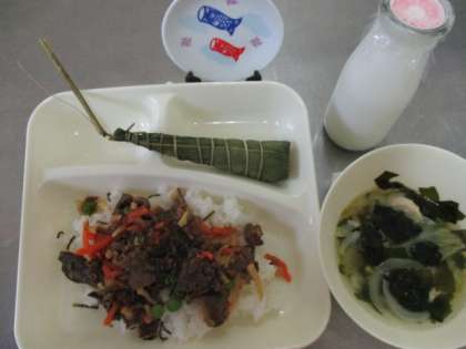こどもの日の行事食は毎年5月5日に食べられるものですが、学校がお休みのため、本日登場しました。