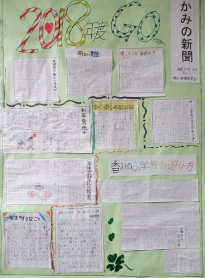 今月号は、新しく香簑小学校に転任してこられた先生へのインタビューや新1年生の好きな給食など1年生特集でした。