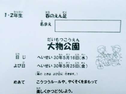 明日、16日(水)は、待ちに待った1・2年生「春の遠足」です。