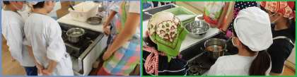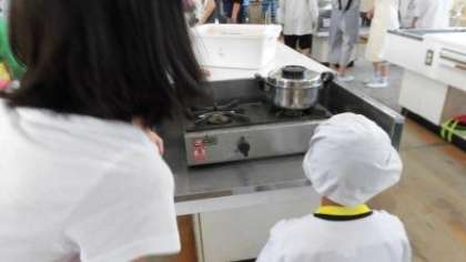 ガスこんろの使い方は、前回の「お茶を入れよう」の学習をよく覚えていて、サッと火をつけることができました。立ち消えがないか、火を見る係の子もジッと見つめています。